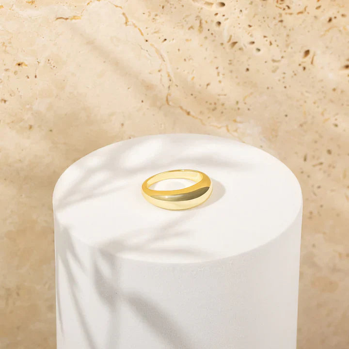 This exquisite Dome Ring beautifully showcases a classic design with a modern twist. With its clean lines and polished finish, it's the perfect statement piece for any occasion. Make a statement and add a touch of elegance to your look with the Dome Ring!
